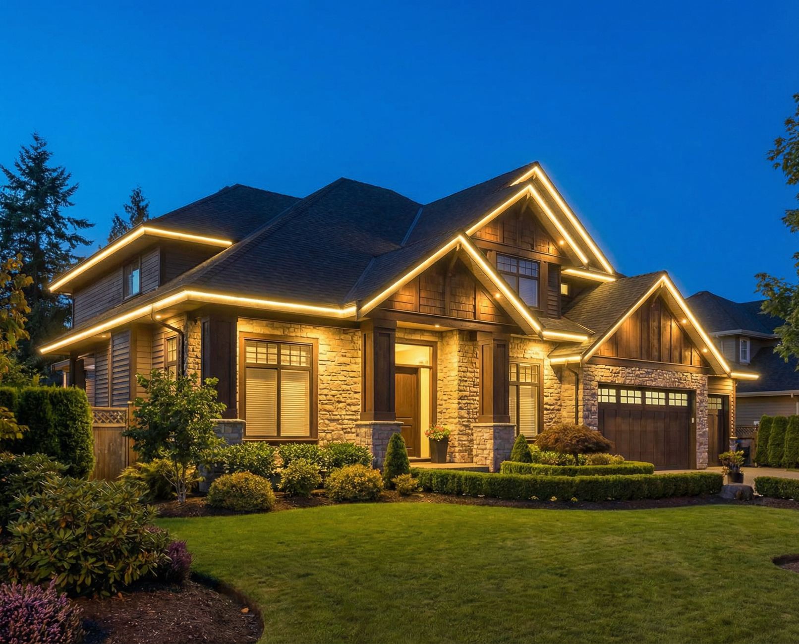 Дизайнер и монтажная бригада помогут не только установить светильники, но и продумать схему так, чтобы свет работал на архитектуру, а не против неё. Это особенно важно для домов со сложной архитектурой, нестандартными материалами или специфическими задачами.
