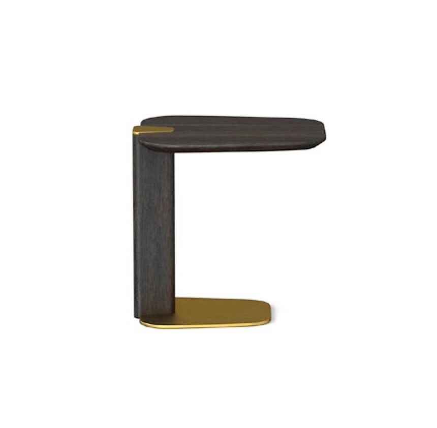 Поверхность столешницы из натурального шпона, ножка из массива дерева, цвет венге. Основа из металла, цвет латунь браш.