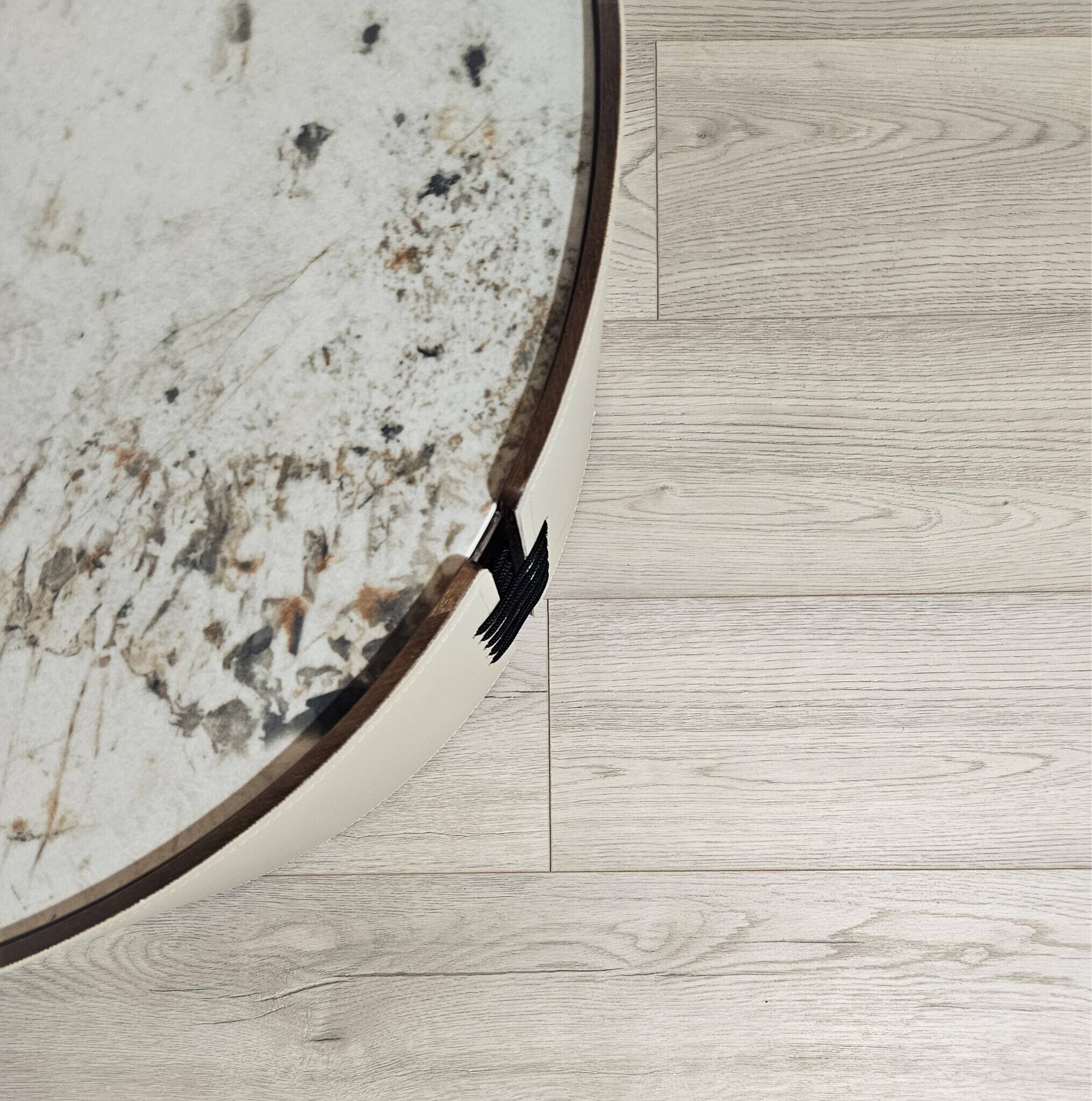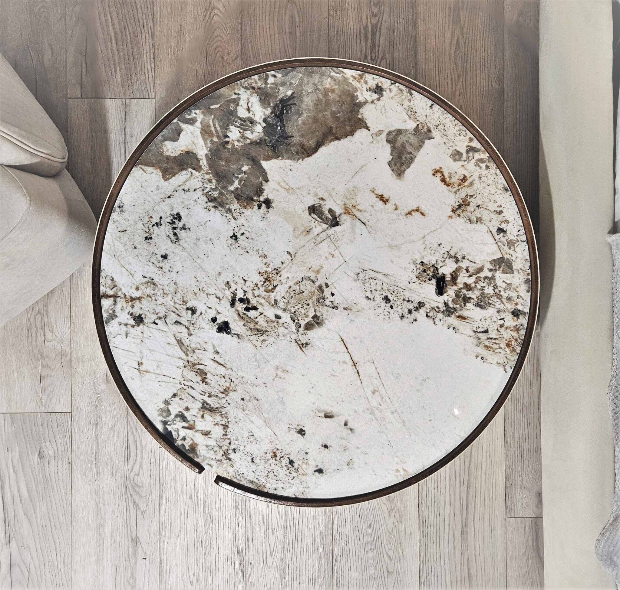 Столешница из высокопрочного и износостойкого керамогранита с глянцевой поверхностью, рисунок Pandora. Небольшое углубление столешницы не позволит предметам падать.