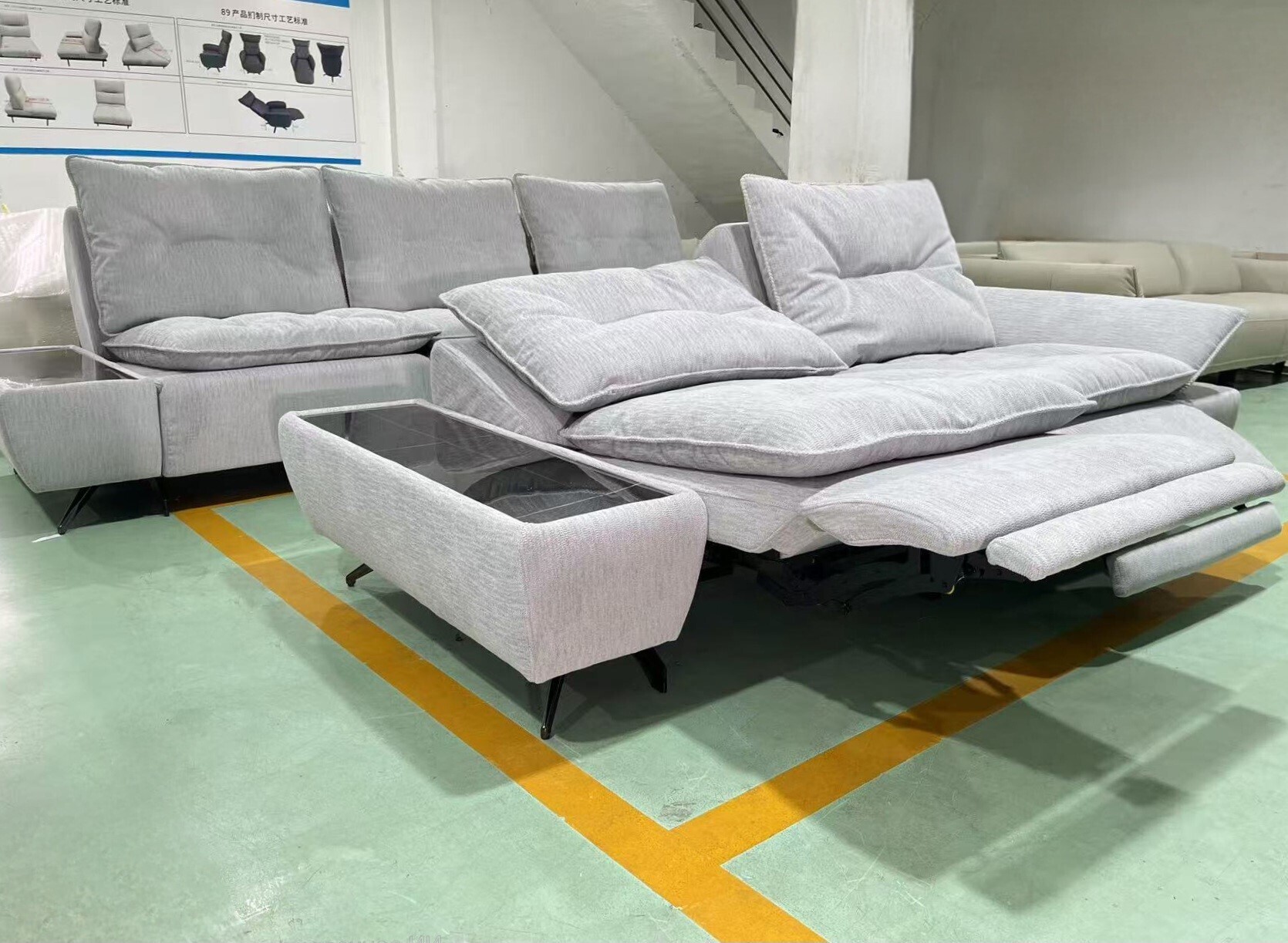 Диван-реклайнер оснащен раздвижными электромеханизмами, позволяющими подобрать наиболее удобное положение.