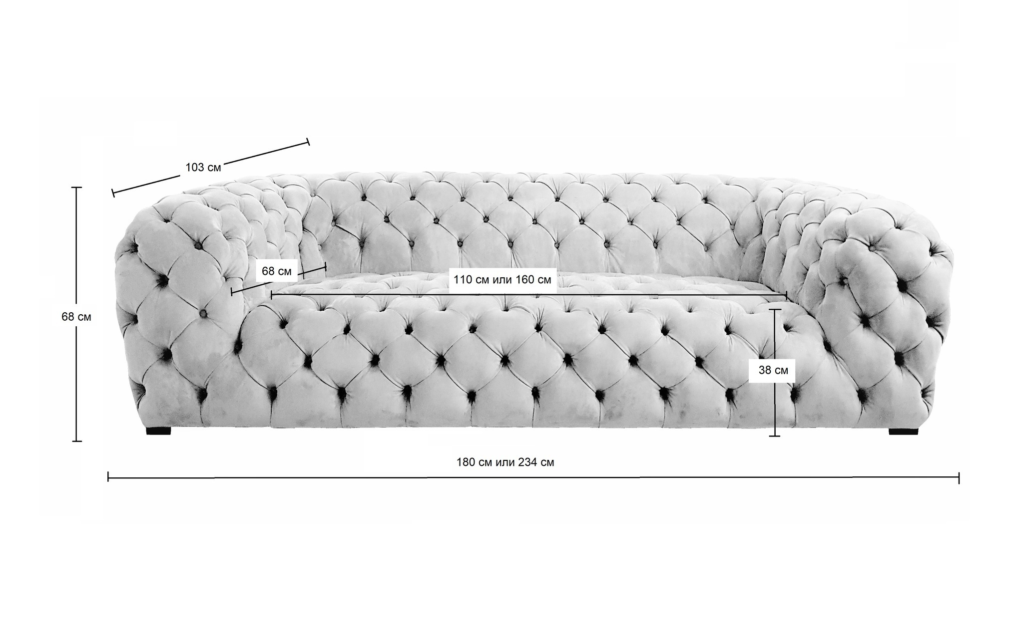 Обивка из велюра придает дивану не только мягкость на ощупь, но и изысканный внешний вид, подчеркивающий качество изделия. Этот материал легко впишется в пространство с любым уровнем освещённости, добавляя ощущение уюта и тепла. Диван Chester, благодаря своей универсальности, подойдет для разных стилей интерьера.
